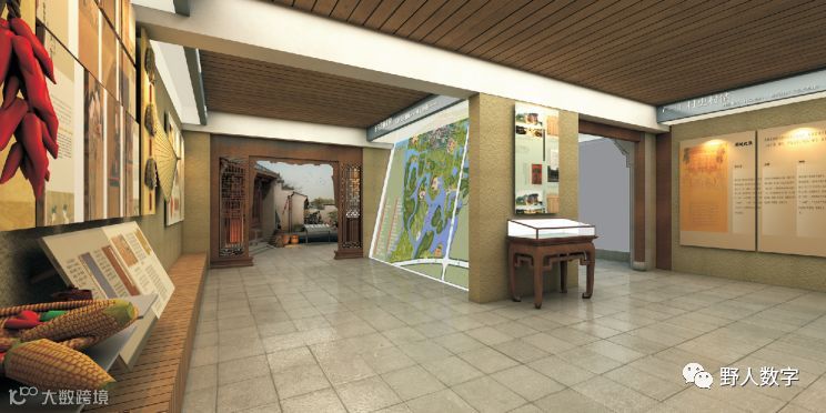 展示美食的乡村风貌,主要通过沙盘与声光电、场景与实物结合展示。