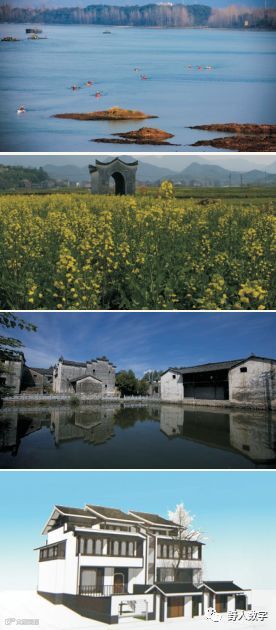 设计内容提炼富春江风光、农村特色风景、明清古建筑、新杭派民居
