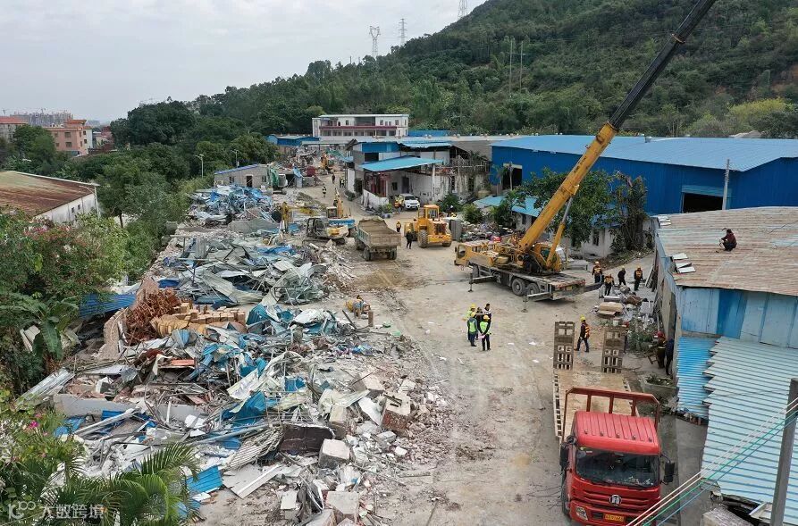 仅仅一天时间,鼎湖的15家“散乱污”企业厂房,共计1.5万多平方米,被夷为平地!现场出动了多台挖掘机对厂房进行拆除!