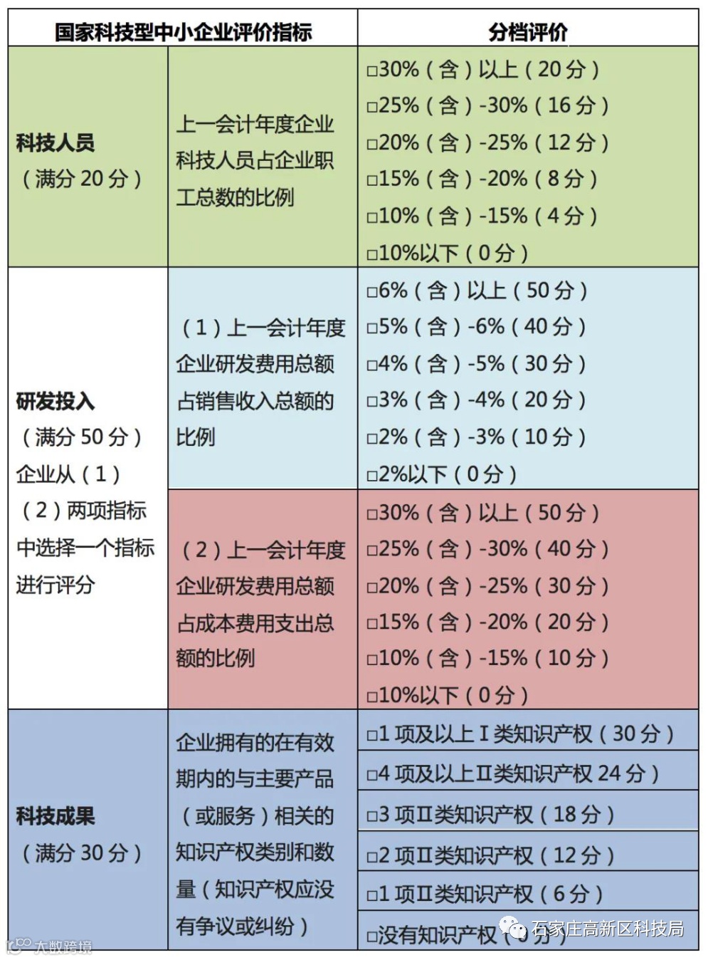 5.企业根据科技型中小企业评价指标进行综合评价,综合评分不低于60分,且科技人员指标得分不得为0分。