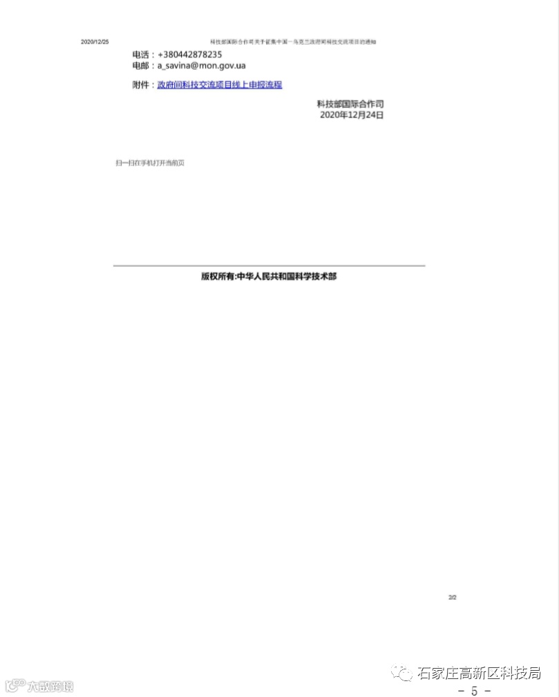 导读:河北省科学技术厅关于转发《科技部国际合作司关于征集中国-乌克兰政府间科技交流项目的通知》的通知》