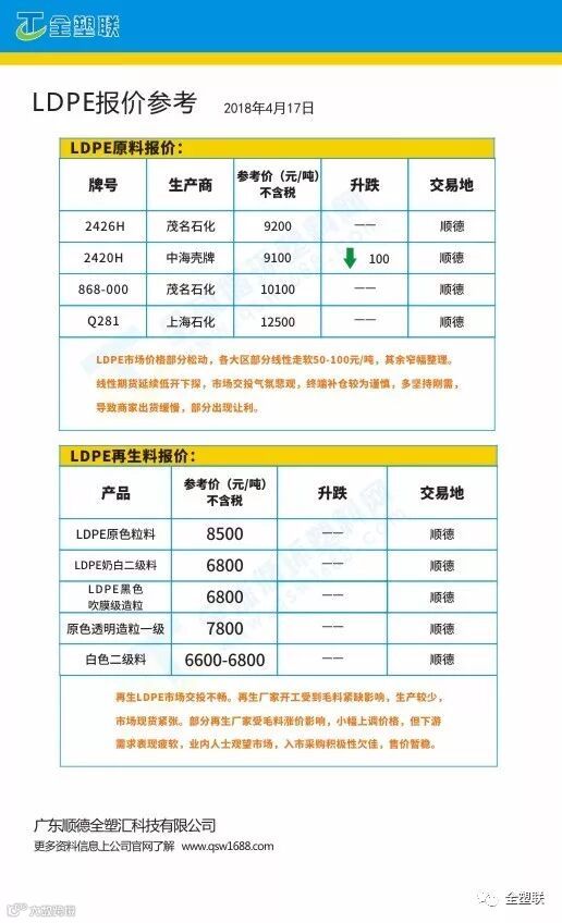 【全塑联-广东塑料参考报价】4月17日