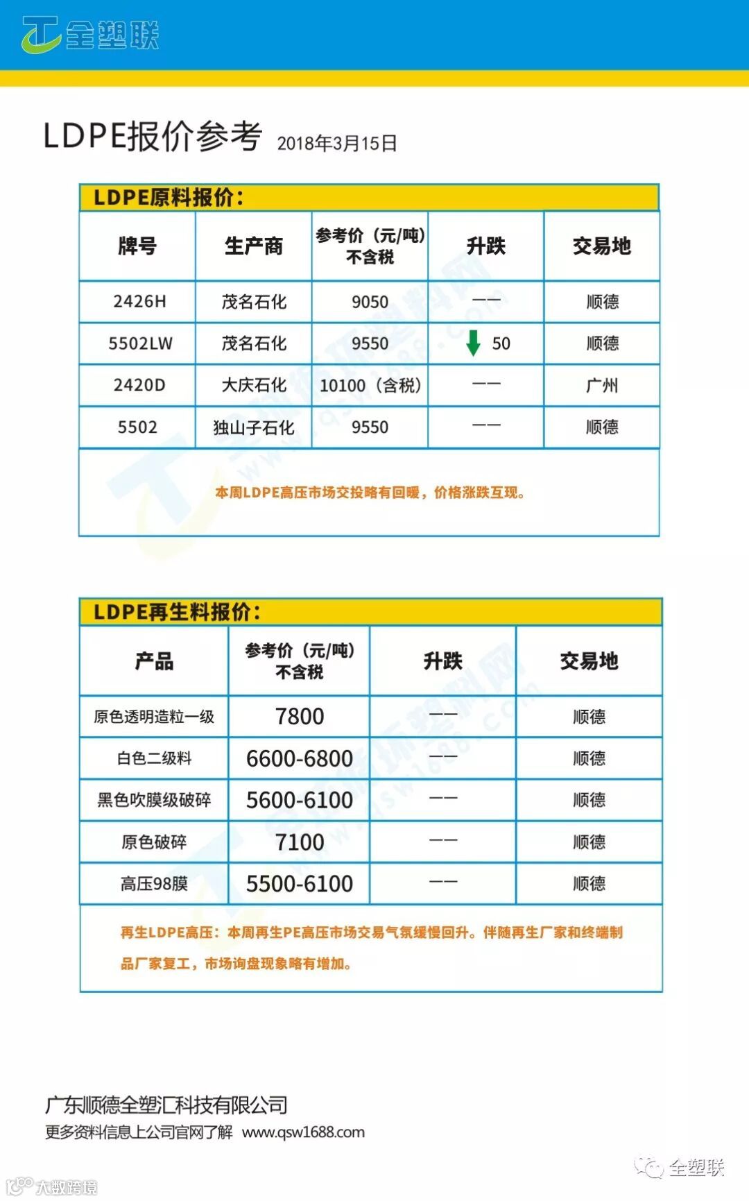 【全塑联-广东塑料参考报价】3月15日