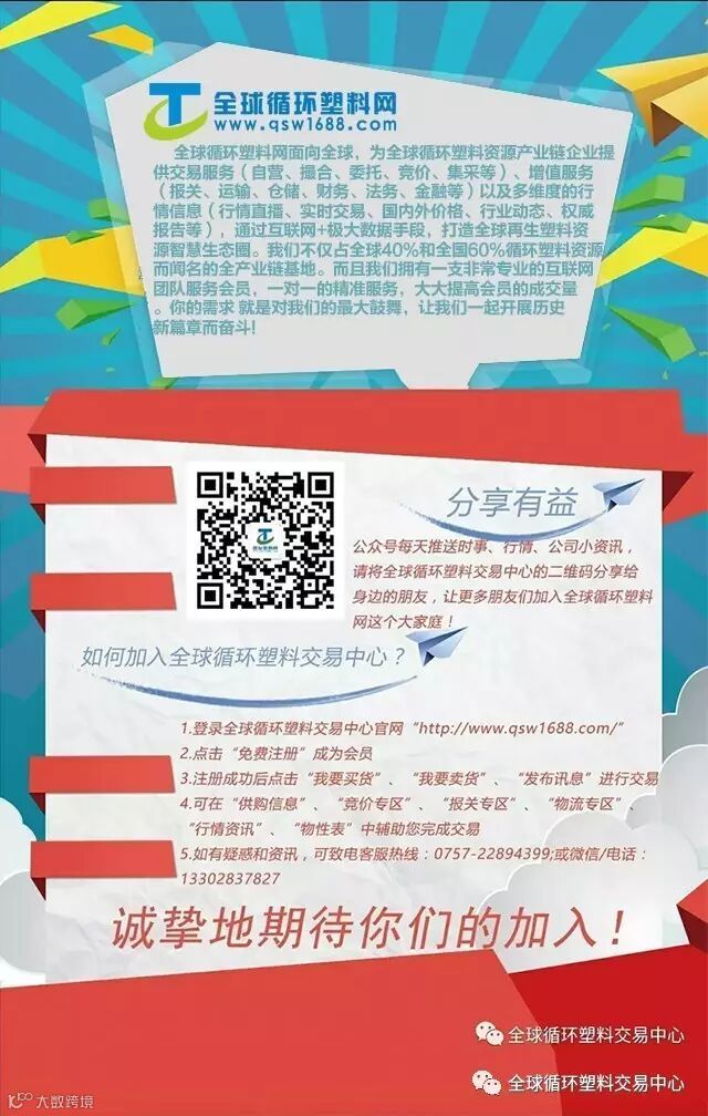 转载请联系全球循环塑料交易中心授权!转载时,请根据文章具体类别,注明转载来源、原文出处以及作者信息,谨防因不规范转载对贵企业平台造成负面影响。如对转载文章有意见,请在文章下方留言,谢谢!
