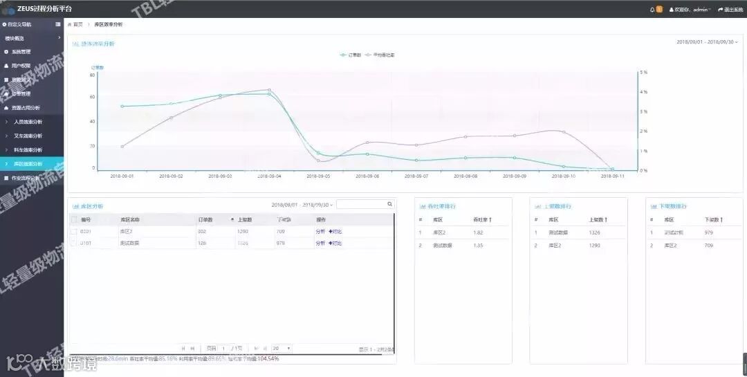 存储区分析:分析库区、货架等维度的吞吐率