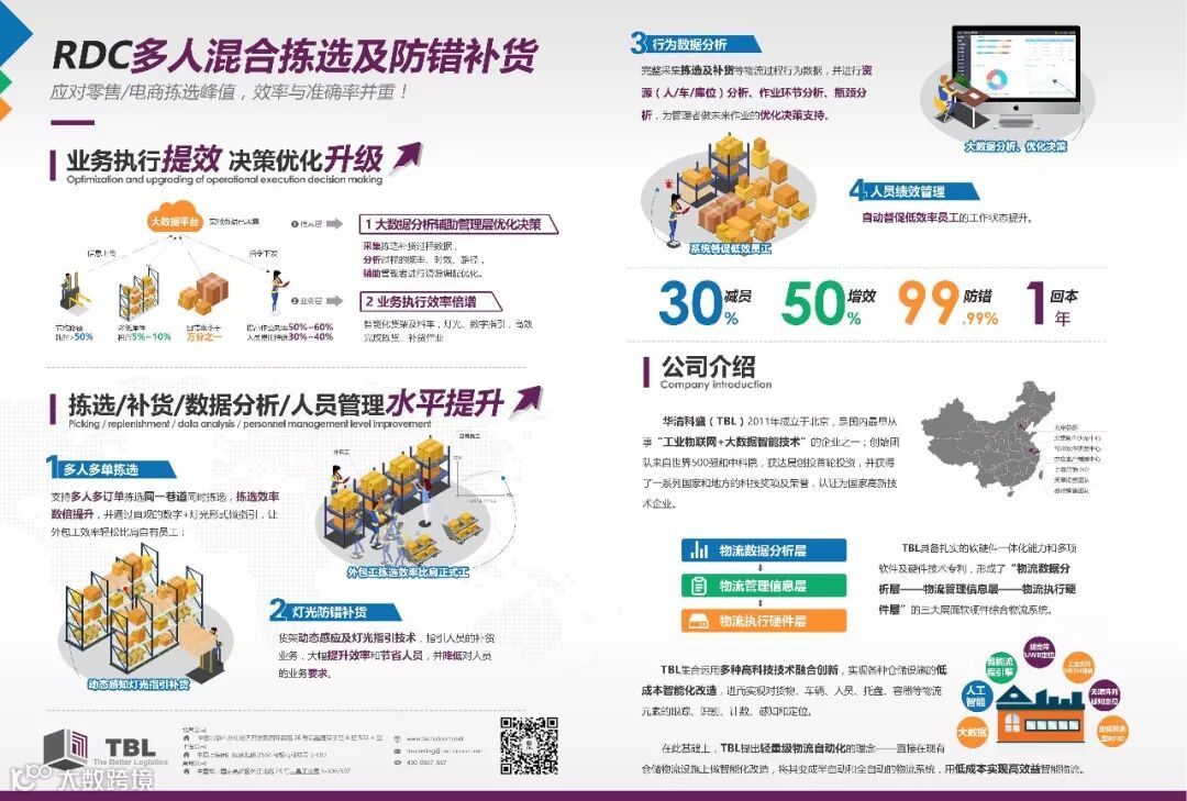 TBL有针对拣选场景的X智能小件拣选解决方案,集成多种物联网技术,工人只需看灯光和数字即可完成全部操作,大幅提升拣选效率,实现员工无差别化,同时可实现单人同巷道拣选多车、多人多车同货区同时拣选。