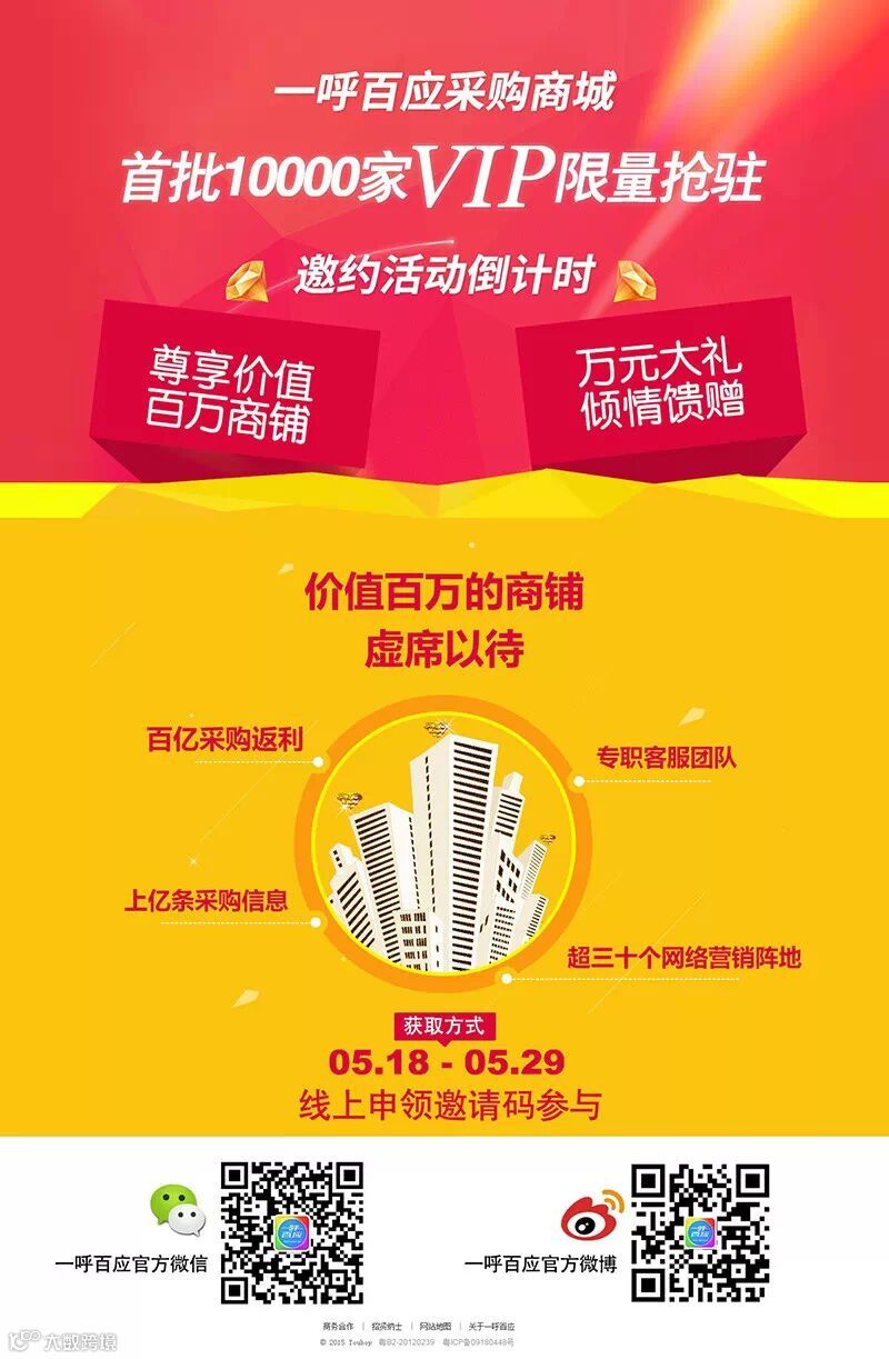 5月18日至5月29日,参与“一呼百应商城终身VIP召集令活动”,点击领取邀请码,就有机会获得万元优惠礼包,每天限量前200名企业。