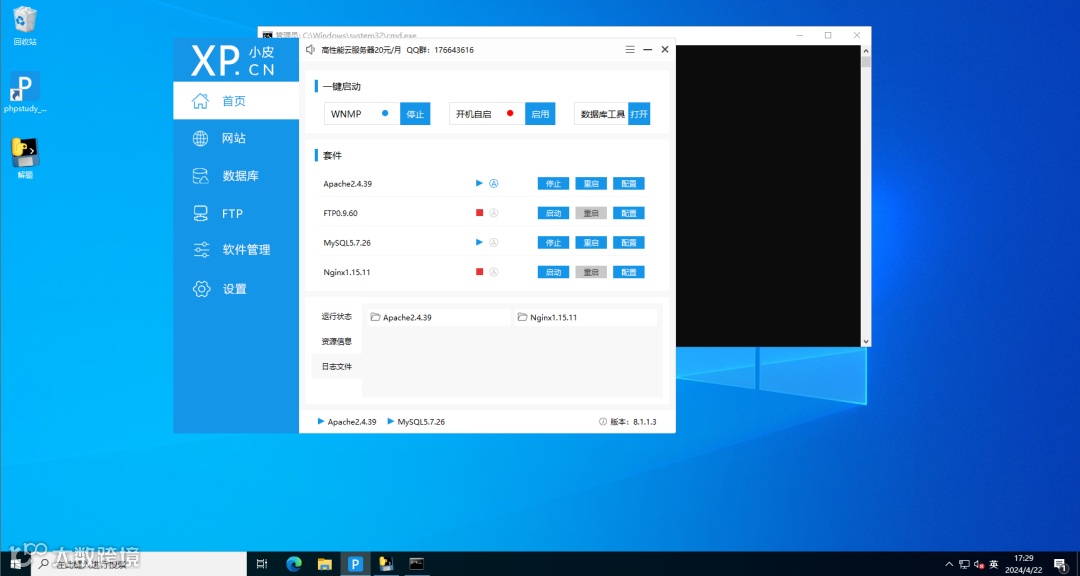 ● 主机由phpstudy开启web服务,使用了apache及mysql。