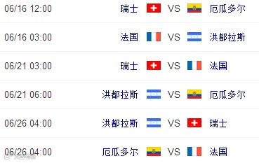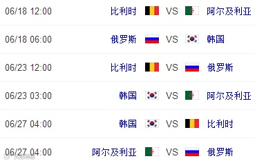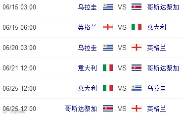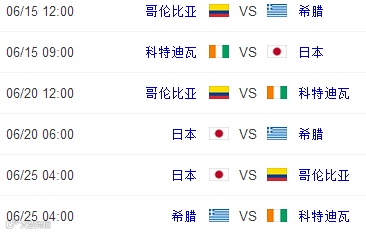 2014巴西世界杯小组赛程