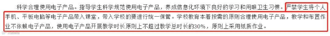 2018年8月30日八部门联合印发《综合防控儿童青少年近视实施方案》对校内使用电子设备做出了规定:
