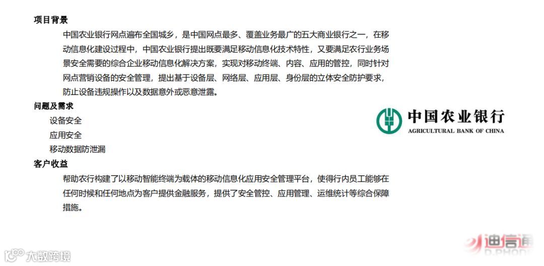 随着企业移动化进程的加快、企业安全问题越来越突出,企业移动化解决方案市场将会迎来更大的机会。信息化管理体系将会给企业带来极大的发展,如何打破时空上的信息限制,跳出固化的传统信息通道,建设一种通过一个平台管理企业的所有“端点”,实现对所有设备的统一管控是很多企业对移动办公的诉求。