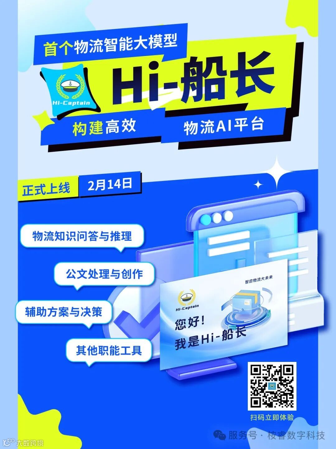 我们公司研发的全新物流智能AI大模型——Hi船长,正式上线啦!快跟上“船长”的脚步,