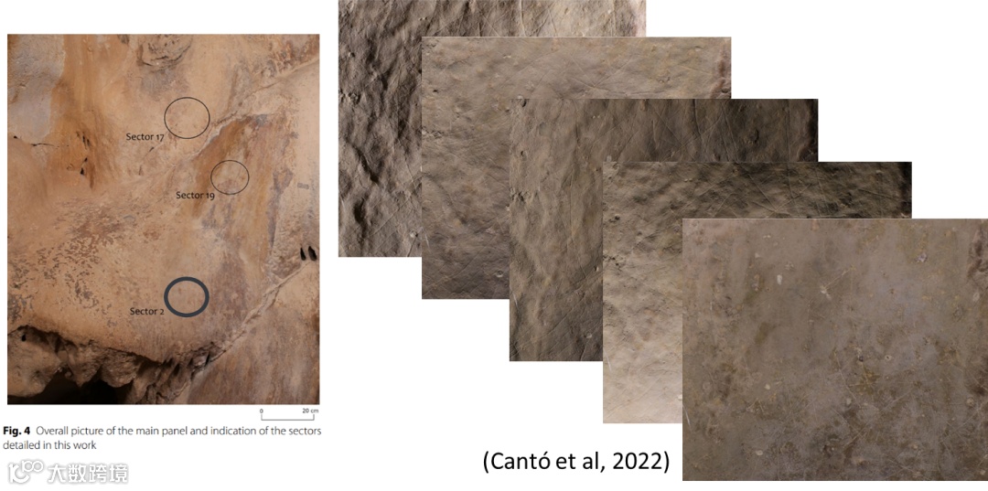 我们将伪彩色图与实物对比,但还不够清晰,需要进一步放大。放大后的1:1彩色图通过自动线条提取,就能显示出内容。可以看到中世纪居民在墙上刻下的好几艘船。最终我们得到约1:5比例、约2米长的图像。实际尺寸很小,只有1:1大小。