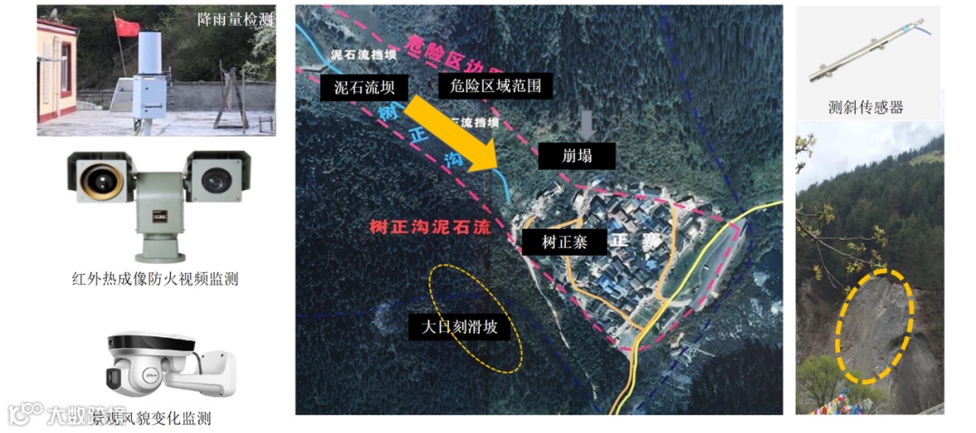 调研中,我们观察到寨旁山体滑坡严重,高危落石频发。由于生态环境脆弱,表层草皮极薄,一旦因地震引发土层剥落,极难恢复。寨内仍有百余原住民居住,因此我们在此布设了降雨量监测、红外成像、风貌变化监测等设备,并建立了预防性保护的监测预警系统。