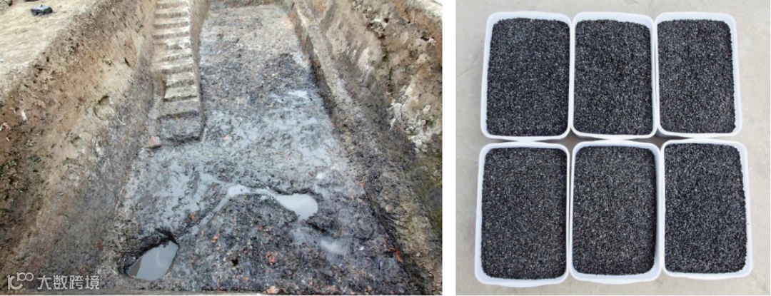 图12 发现的被火烧毁的粮仓和清洗出来的稻谷