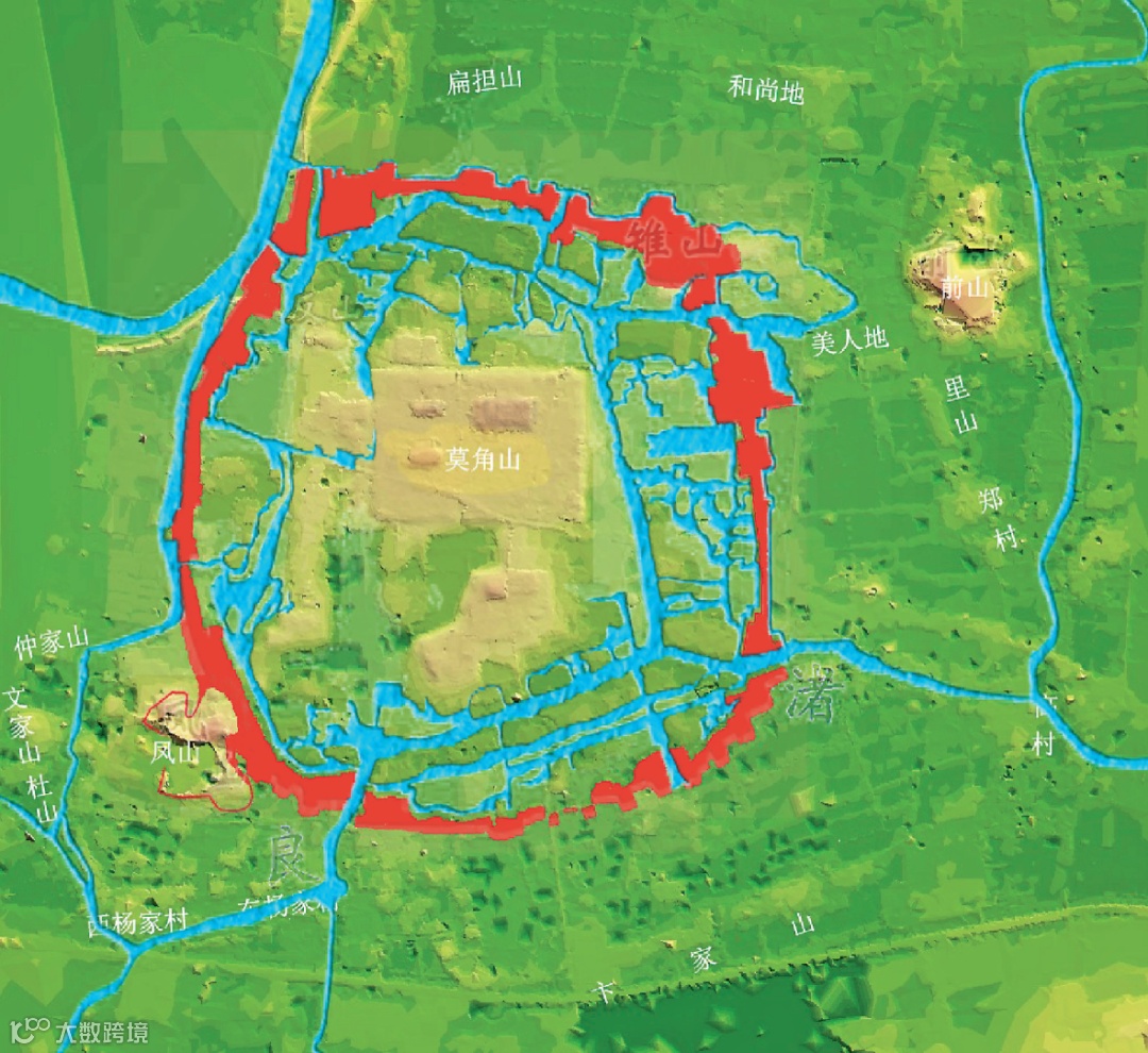 图13 早期良渚城内布局(数字高程图)