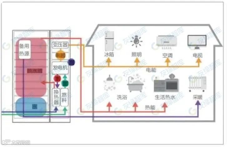 利用燃料电池纯发电效率仅约为50%,而通过热电联供方式的综合效率可达85%——氢燃料电池在为建筑发电的同时,余热可回收用于供暖和热水,与传统的火力发电输电相比,总效率提高2倍左右。