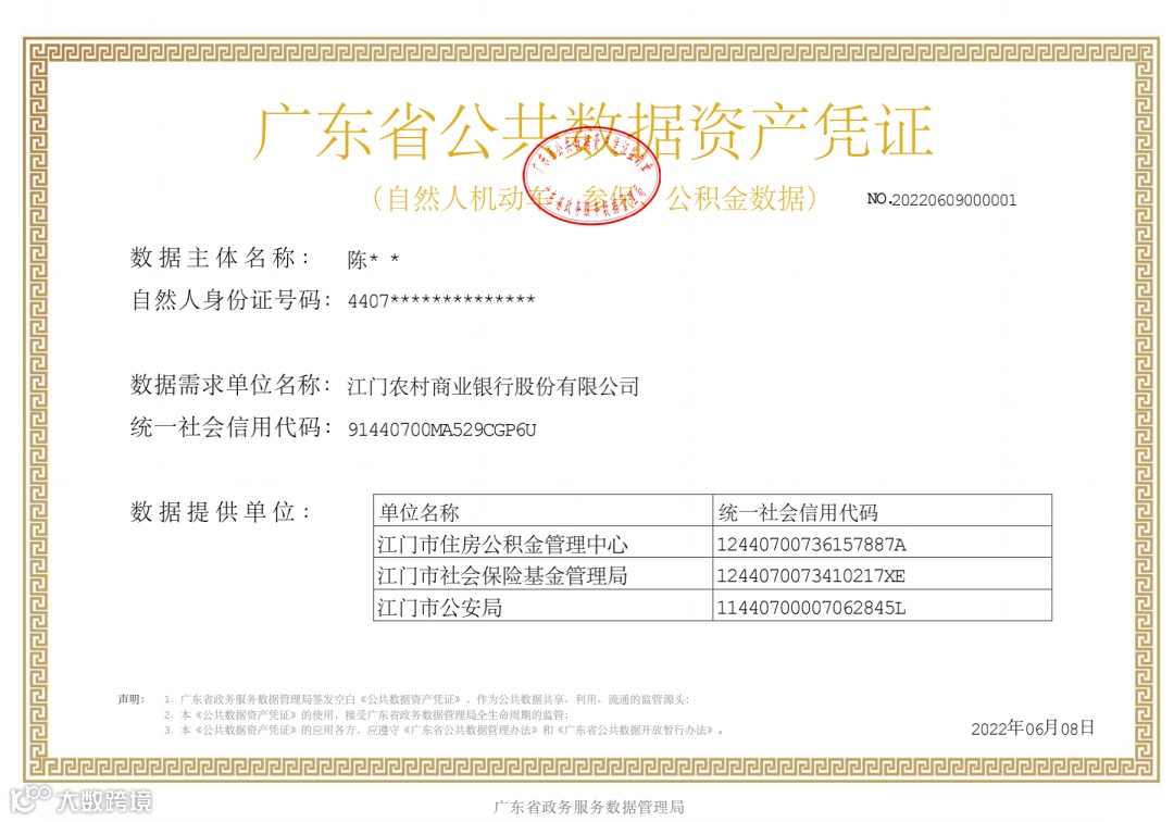 近日,广东省数字政府市域社会治理“一网统管”示范区和数据要素市场化配置改革试验区揭牌暨首张融合数据元件的数据资产凭证发布活动在江门举行。会上发布了全国首张融合数据元件的数据资产凭证,有效地提升了数据安全性和流通效率。在广东省政务服务数据管理局的专业指导和大力支持下,中国电子旗下数字广东公司、中国系统携手,依托中国系统搭建的数据要素操作系统,结合数字广东公司建设运营的数据资产凭证服务平台,在江门探索推进“数据元件+数据资产凭证”的流通新模式,实现融合数据元件的数据资产凭证应用新突破。
