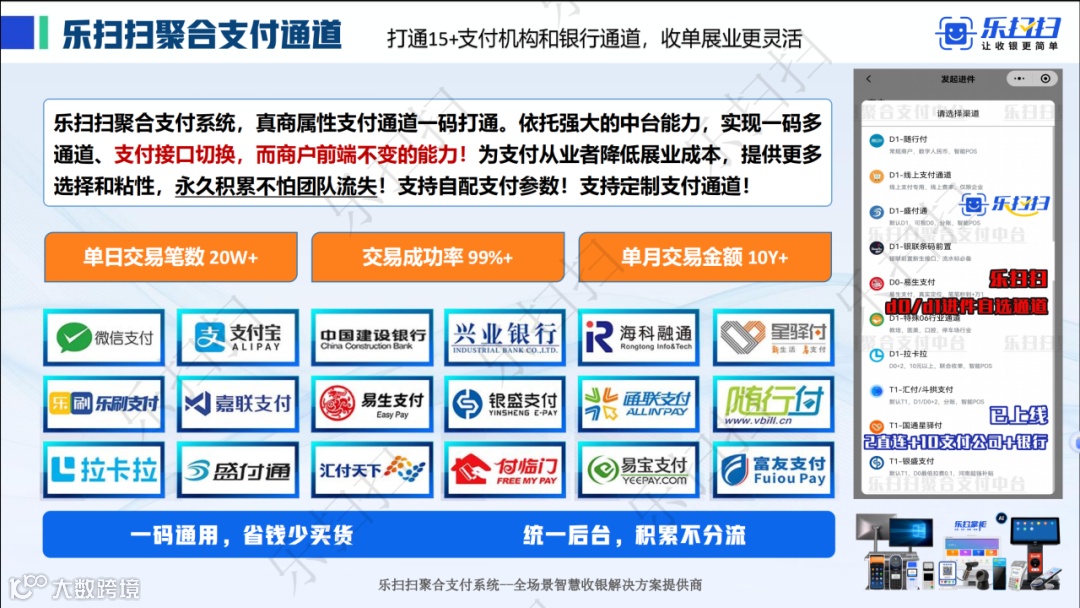 真商市场的尽头,是行业解决方案,而不是简单的支付。乐扫扫聚合支付系统,以开放性的聚合生态,助力真商从业者,一路同行,顶峰相见!