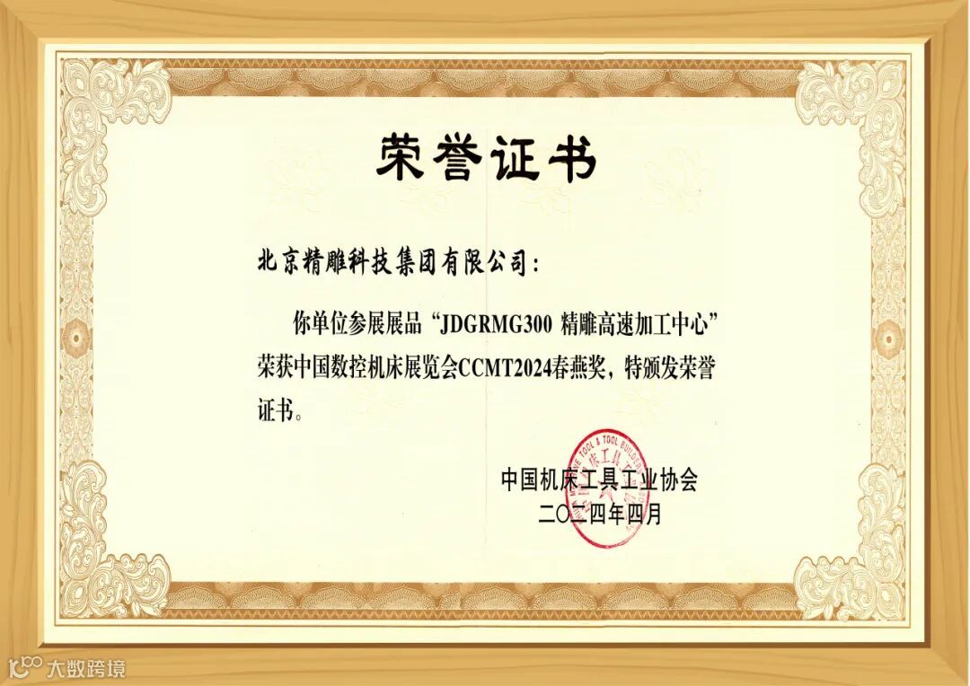 2024年,凭借卓越的实力,北京精雕先后荣获“机械工业大型重点骨干企业”“机械工业科技进步二等奖”“CCMT2024春燕奖”等多项荣誉与奖项。