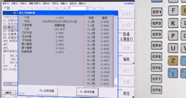 机内检测刀具在不同角度上的半径值,