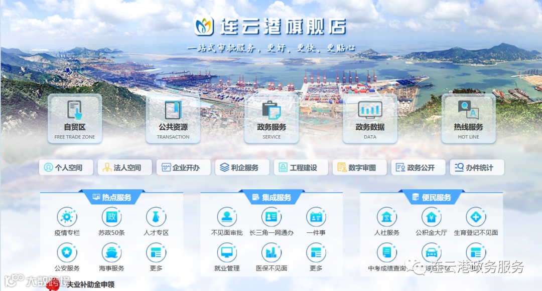 近年来,连云港市围绕大数据共享共用,以标准化为抓手、智能化为引领、创新化为动力,按照集约化、规范化、要求打造一体化“大平台”,全力推进以大数据为引领的政务服务平台建设,实现“一网通办”“异地办理”。