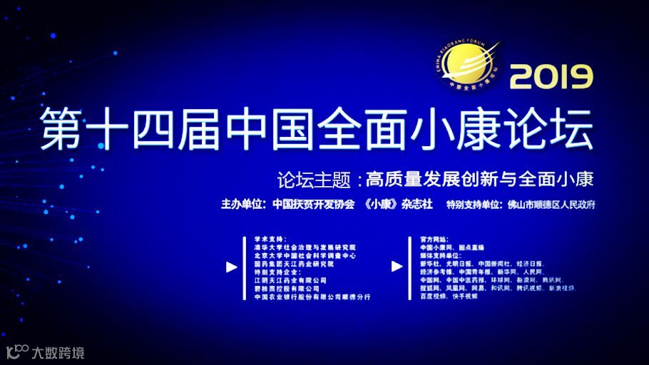 2019第十四届中国全面小康论坛12月28日在广东顺德召开。本届论坛由中国扶贫开发协会、求是《小康》杂志社共同主办。本届论坛以“高质量发展创新与全面小康”为主题,汇聚国家及部委领导、专家学者、地方实践者、企业领袖、战略咨询专家和媒体精英,就全面小康建设中的重点及难点问题展开讨论,在新时代下为中国决胜全面小康社会助力。该论坛是中国唯一以“全面小康”为主题的国家级大型论坛,是社会各界把握中国经济与社会发展趋势、探寻发展模式、树立地区形象的交流与展示平台。