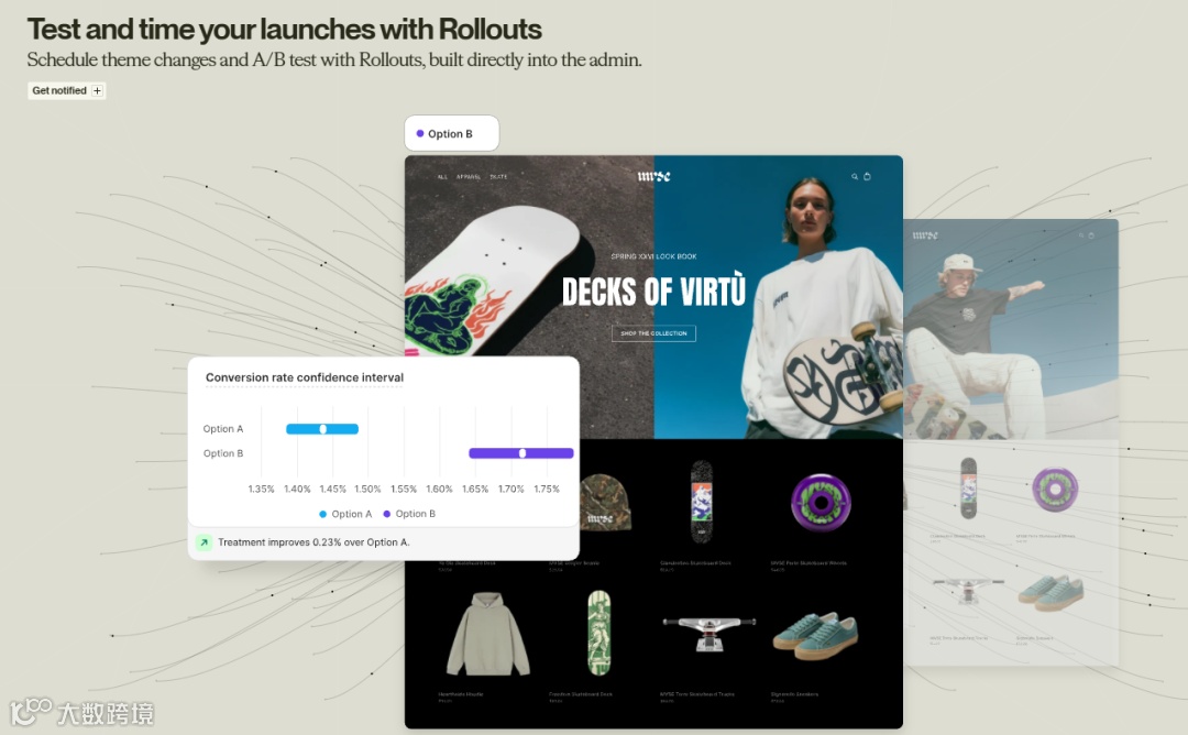 通过Rollouts安排主题变更和A/B测试,该功能直接集成在管理后台中。