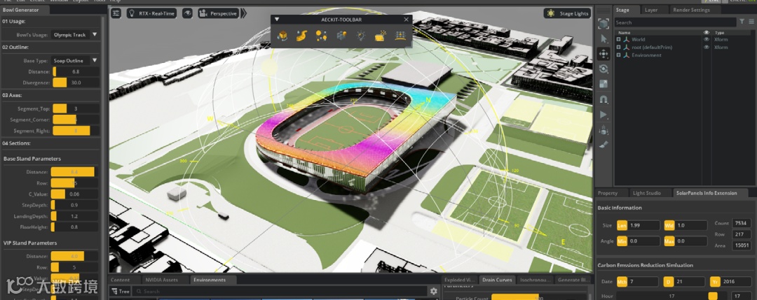 在去年秋天举行的 NVIDIA 首届#ExtendOmniverse contest 竞赛中,该扩展应用大放异彩,赢得了“场景修改器或操作工具”类奖项。通过“SunPath” extension,用户可以在 Omniverse 视口中轻松添加、操作和更新太阳路径图。