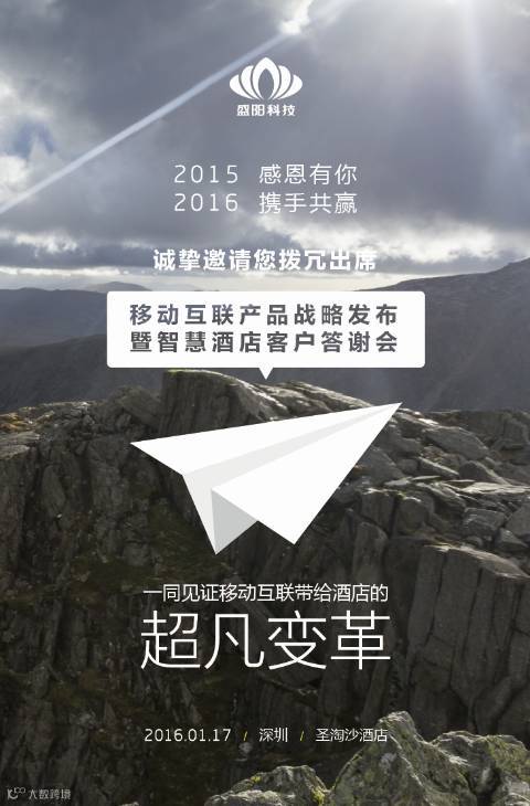 精彩即将启幕:2016盛阳科技移动互联产品战略发布暨智慧酒店客户答谢会