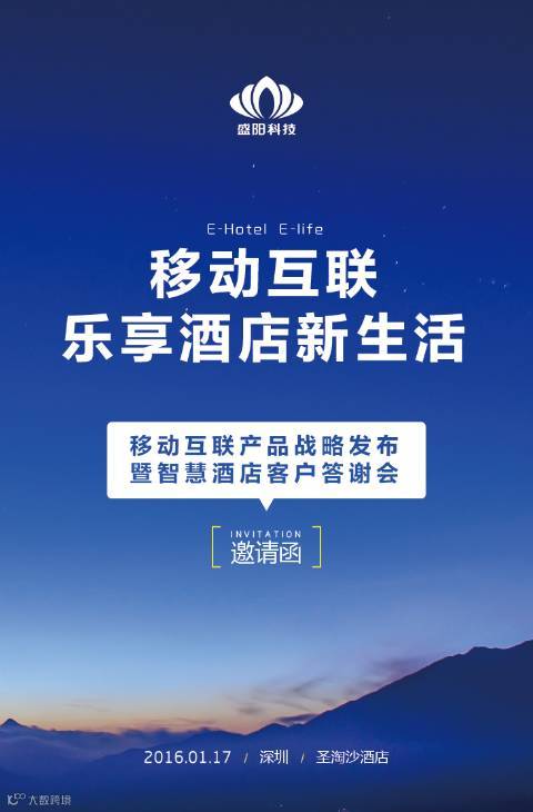 以“移动互联 乐享酒店新生活”为主题的2016盛阳科技移动互联产品战略发布暨智慧酒店客户答谢会1月17日将在