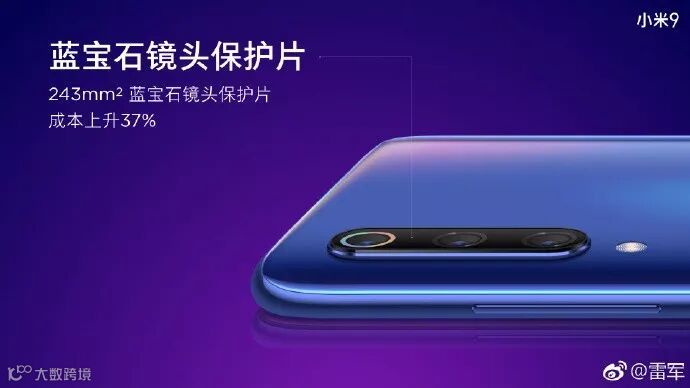 小米9对凸起镜头的保护格外重要,不惜成本。首先用不锈钢的边框包裹,接着蓝宝石玻璃覆盖了全部三个摄像头,蓝宝石玻璃面积高达243平方毫米,完全不用担心镜头被划伤。