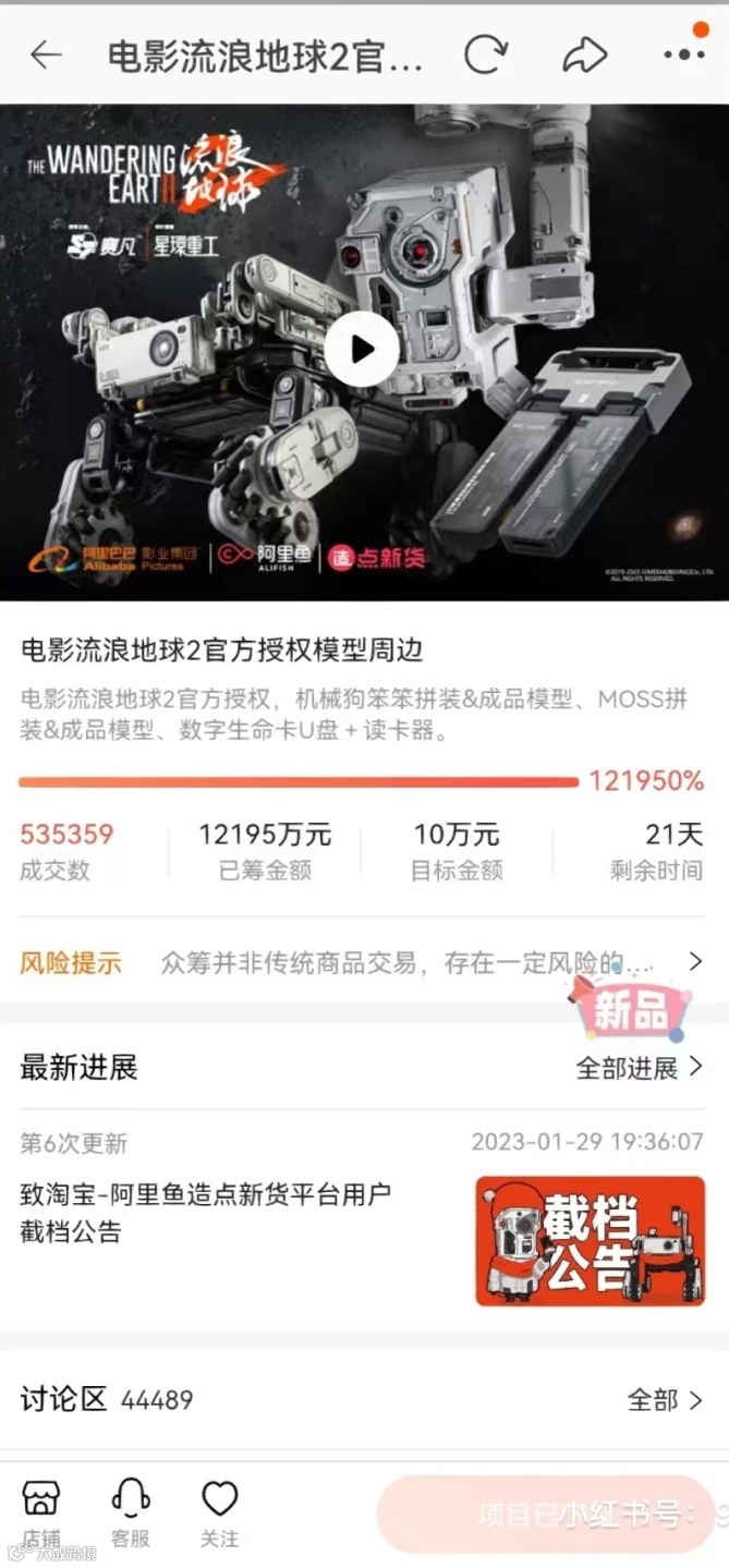 更让人津津乐道的是,《流浪地球2》上映不久后,原本目标10万元的周边众筹项目就成功筹得了1.2亿元,导致官方不得不提前截单,其影响力可见一斑。