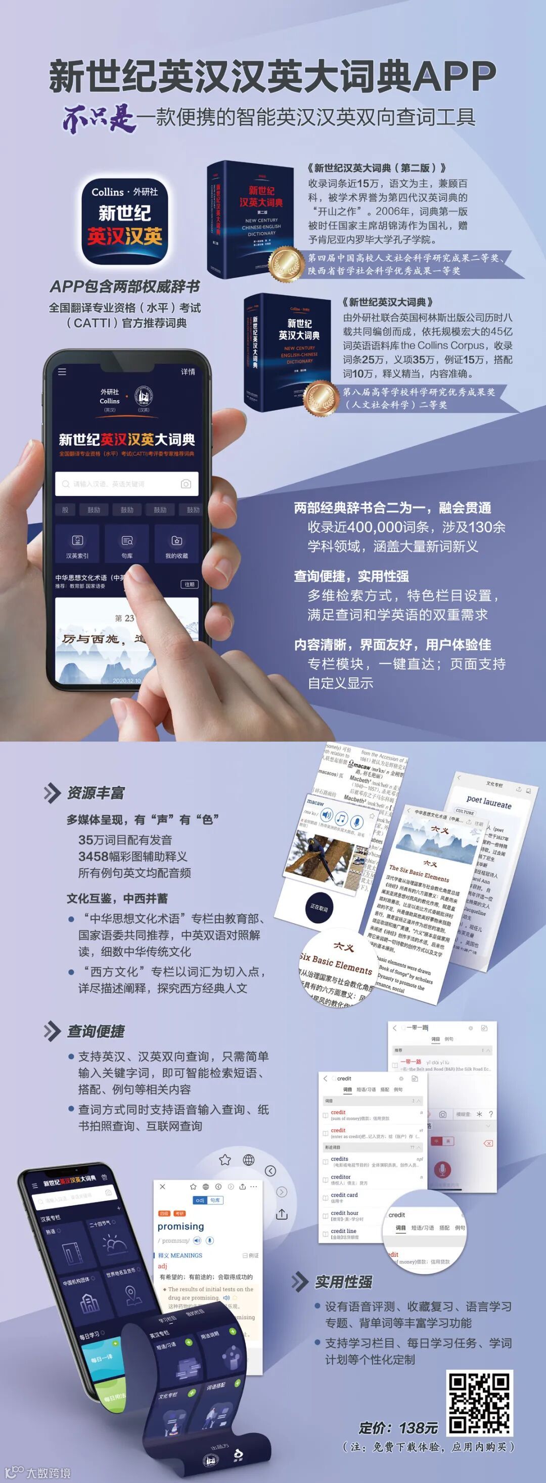 将《新世纪汉英大词典》和《新世纪英汉大词典》两部经典辞书合二为一,为英语翻译人群提供权威专业的查词与学习服务。