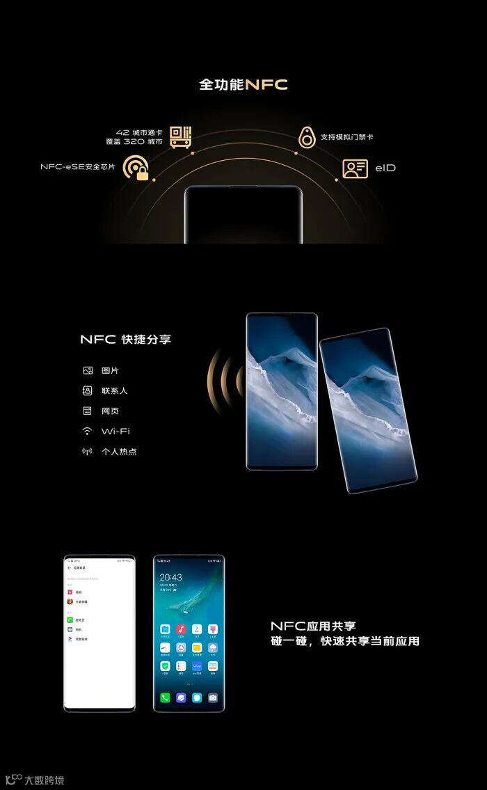 畅通无阻 NEX 3S 标配NFC-eSE安全芯片,支持公交卡(目前已支持42个城市的通卡,可覆盖全国320城市)、支持模拟门禁卡、支持eID电子身份证标识。