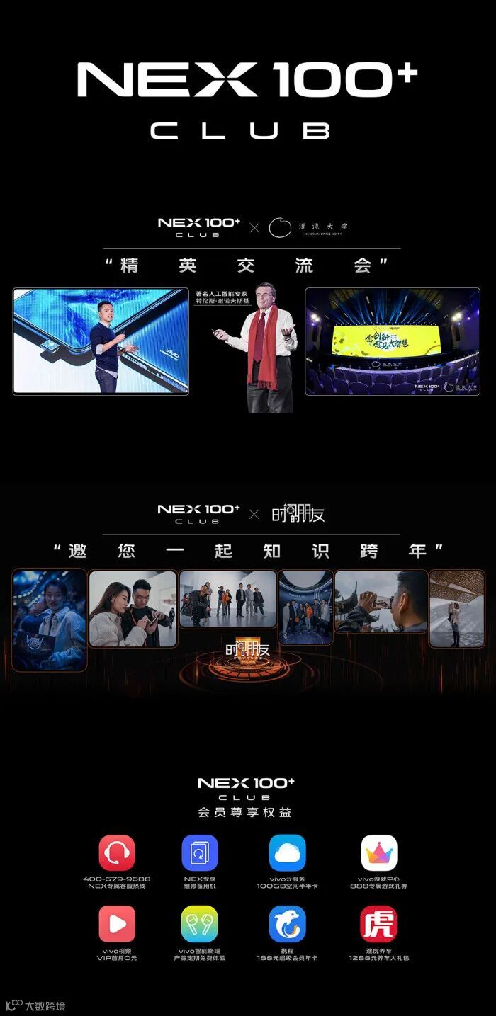 #NEX100+ CLUB#继续秉承“未来无界“的理念,诚邀每一位NEX用户加入,为每一位NEX用户带来突破产品本身的尊贵体验。