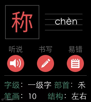 分别点击图标就能聆听播音员标准发音、看汉字规范笔顺、学汉字相关的拓展知识。