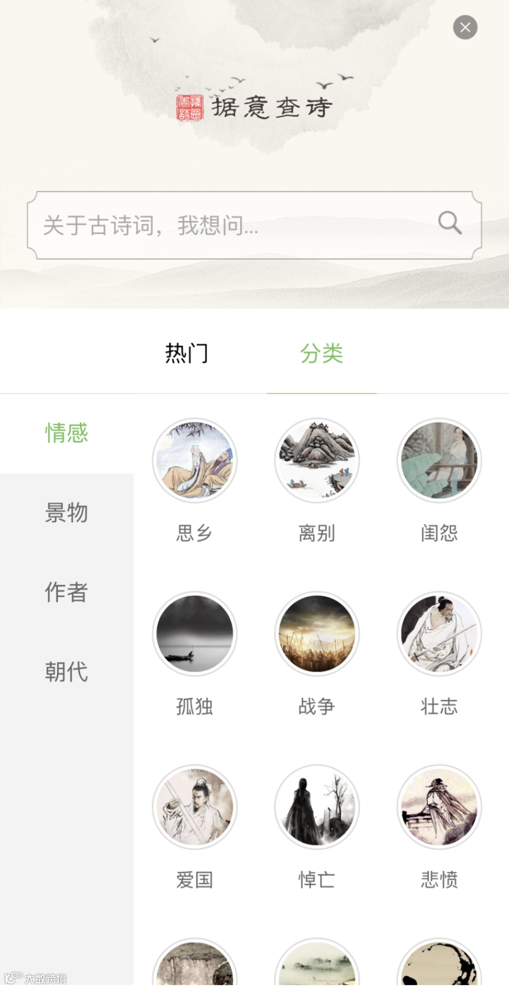 也可以通过现有的“分类”来系统性地赏析学习不同朝代、不同主旨的经典诗词。
