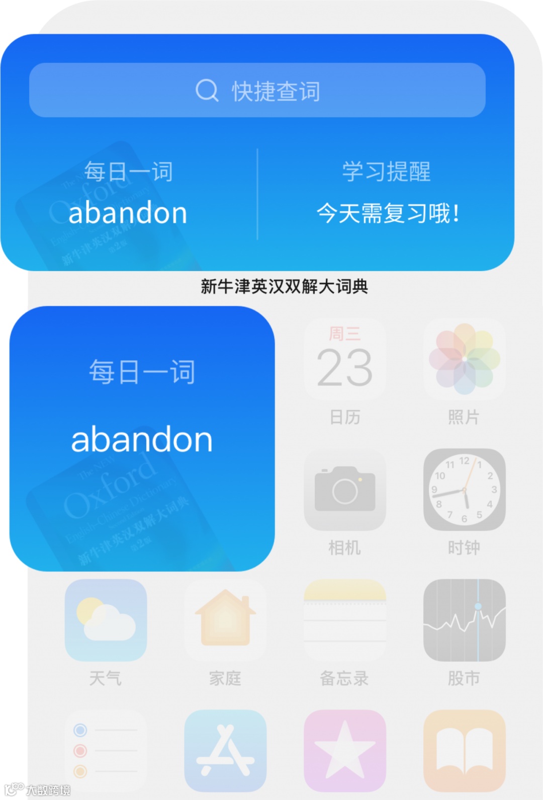 iOS14用户更新后可在iPhone、iPad桌面添加《新牛津英汉双解大词典》APP小组件——