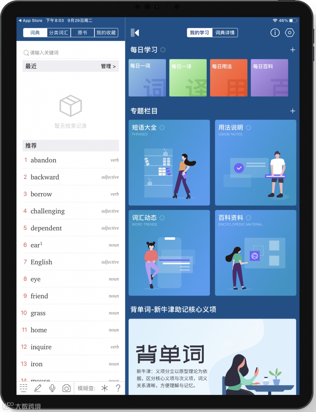 习惯用iPad的小伙伴现在可以尽情横屏查词、学英语啦!