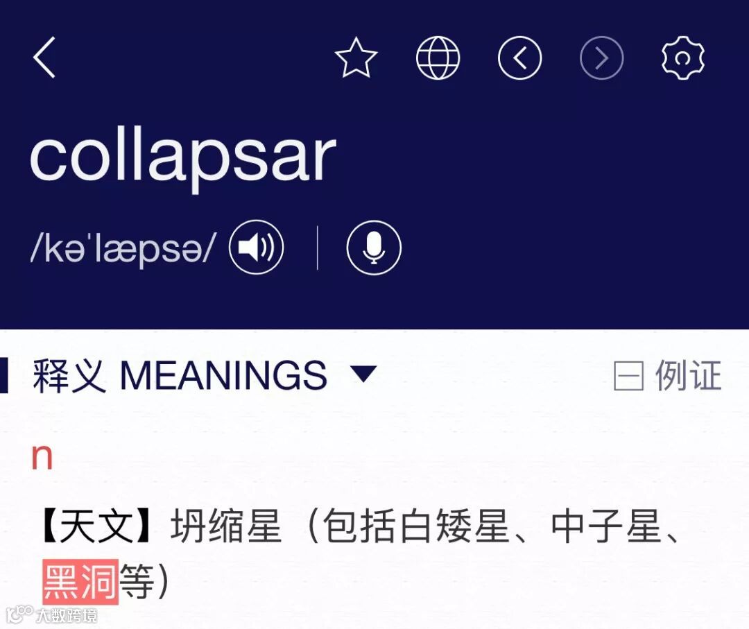 第二个建议词汇是collapsar:坍缩星,黑洞。