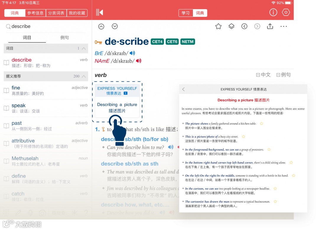 《牛津高阶英汉双解词典》APP还原纸书经典,提供权威规范的单词解析:精美插图、词汇中英双解、海量例证、短语搭配、词语辨析、习语等一应俱全。