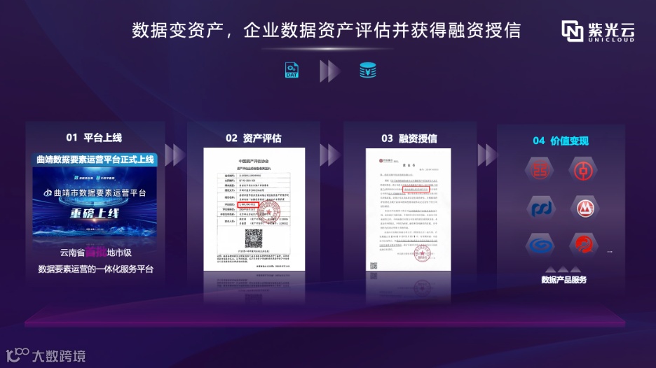 在金融领域,紫光云基于公积金、不动产等相关数据,打造金融信贷模型数据产品,助力金融领域数据要素价值释放。该项数据产品获得了资产评估机构的高度评价,并在中国资产评估协会备案,为曲靖市数字经济发展有限公司带来了可观的融资意向,展现出数据资产在金融领域的转化潜力。