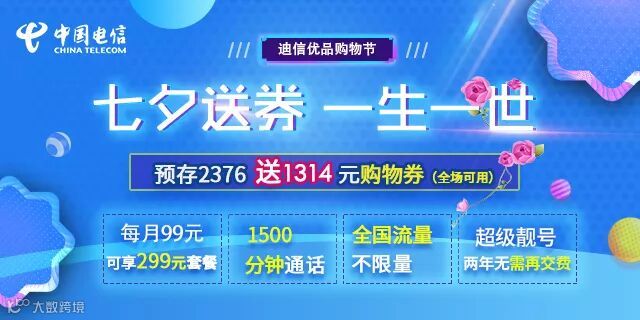 购手机送398元电信套餐专享优惠券,仅需59元/月,即可享受2年每月1500分钟通话,全国流量不限量