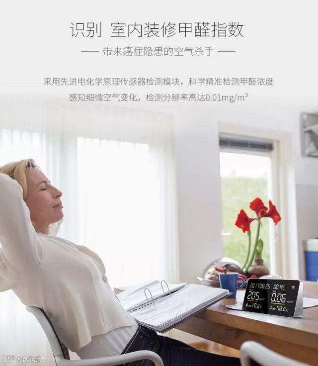 斐讯空气检测仪,精准检测你家的空气,识别室内甲醛指数、PM2.5细小颗粒污染、温湿度显示!