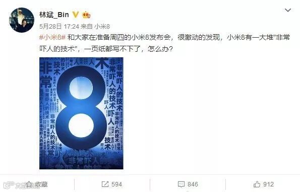 近日,小米联合创始人林斌在微博也宣布小米8将有“非常吓人的技术”,甚至一页纸都写不下。