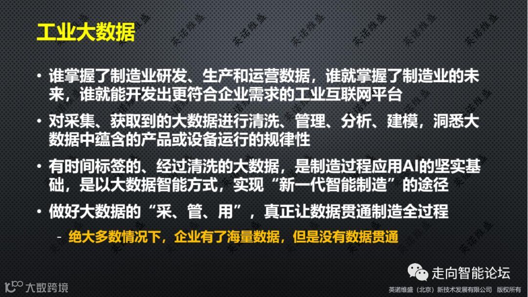 在工业互联网的价值链上,智研院认为,谁能掌握并贯通工业大数据的“采、管、用”三大环节,谁就能更准、更快地抢得市场先机,创造高附加价。