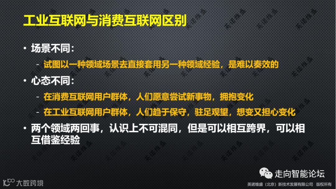 我认为,工业互联网与消费互联网的不同之处在于: