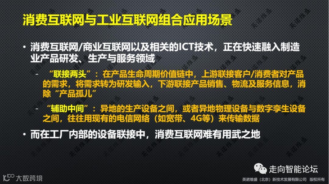 消费互联网是统一标准协议,开放网络;工业互联网是不兼容协议、封闭网络。