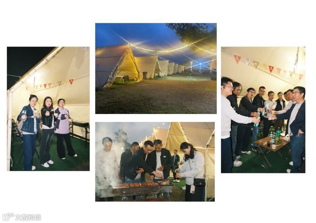 晚上的露营烧烤把氛围拉满,烤架上的本地羊肉滋滋冒油,大家围坐在一起,一边品尝着烤串、饮料,一边与同事畅谈。聊到兴起时,大家便一同举杯,祝愿大家都有更好的明天。